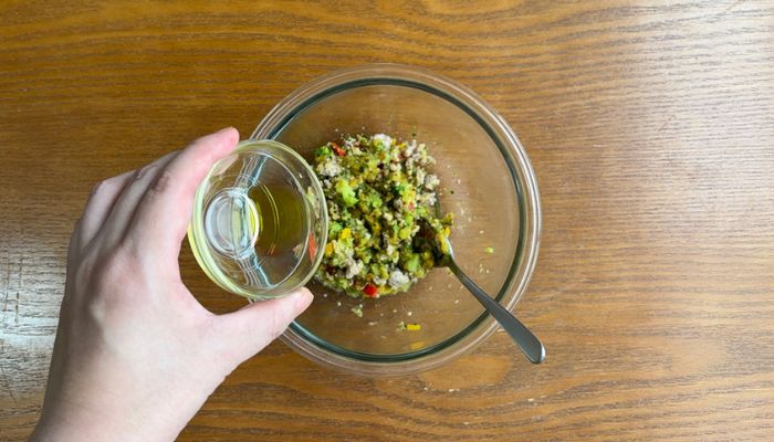 ②に①を加えて混ぜ、仕上げにオリーブオイルをひとたらしして完成♪