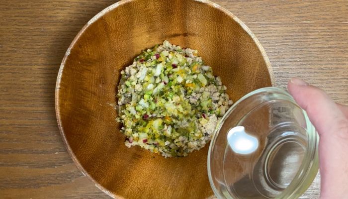 ①②③全部を混ぜ、最後にクレソンをほんの少しだけ追加します。