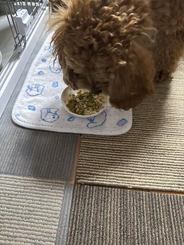 最初は他のフードと混ぜていましたが、あまり食べない状態でした。わんこの給食に野菜を混ぜて食べさせたら毎日完食です。ご飯の時間になるとワクワクしているのが伝わってきます。