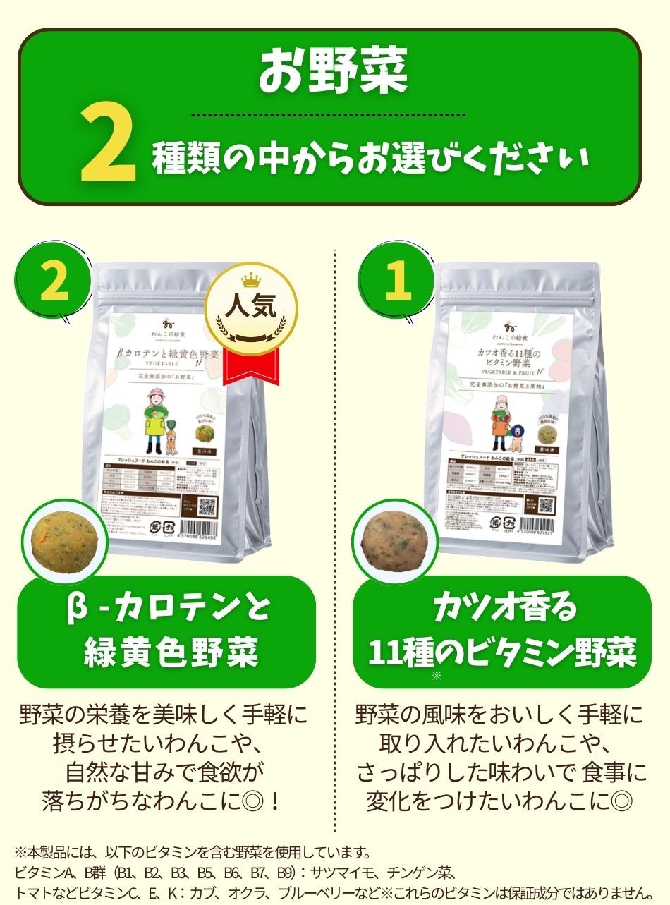 バランスの良い食生活を続けて欲しいという思いから2点セットをオススメしております。ですが、どうしても食べられない食材がある場合は、お気軽にご相談ください。できる限りご希望に添えるようにいたします。