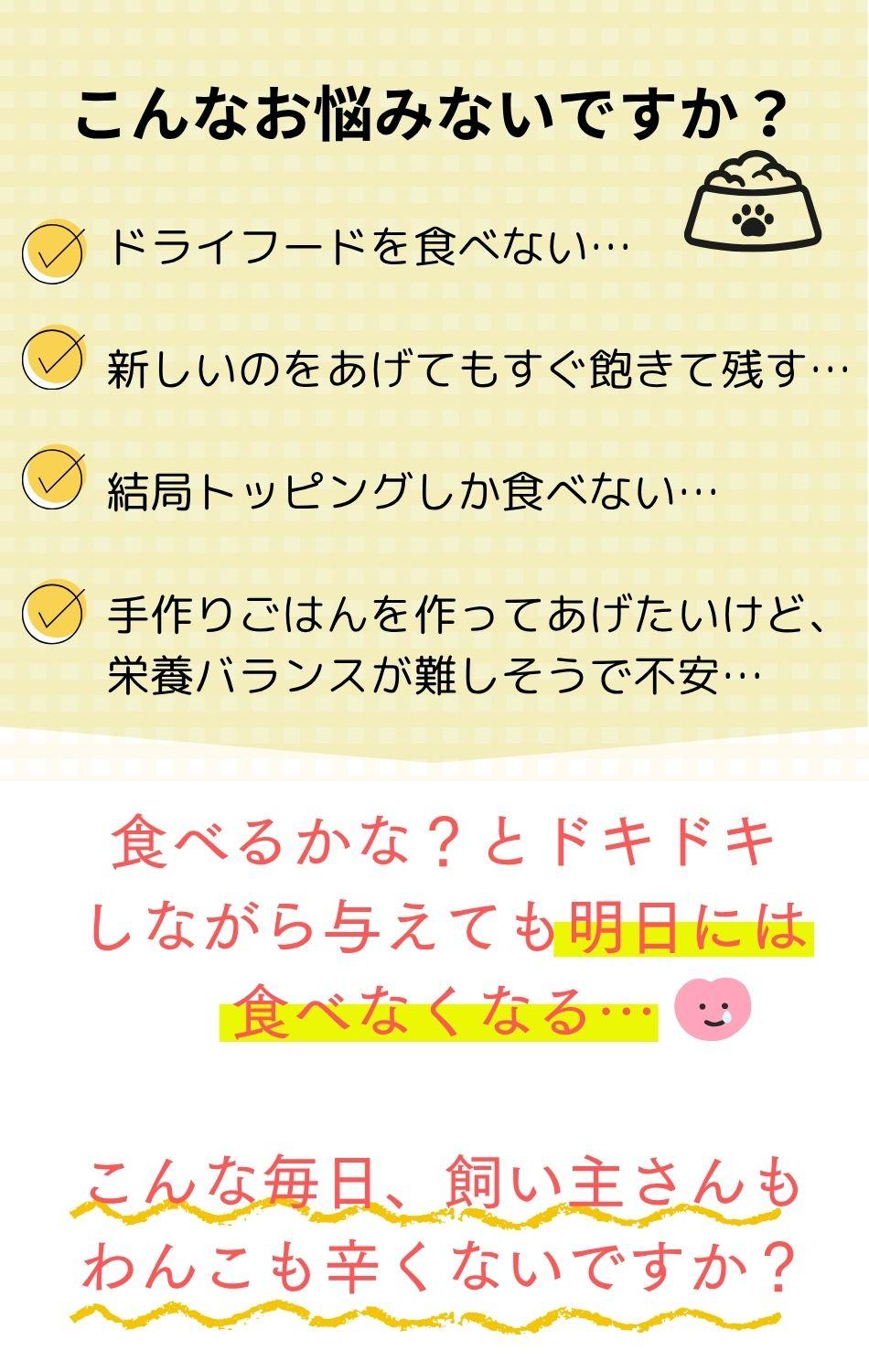 バランスの良い食生活を続けて欲しいという思いから2点セットをオススメしております。ですが、どうしても食べられない食材がある場合は、お気軽にご相談ください。できる限りご希望に添えるようにいたします。
