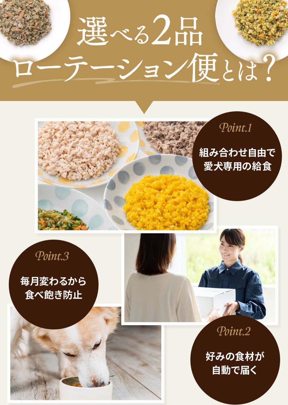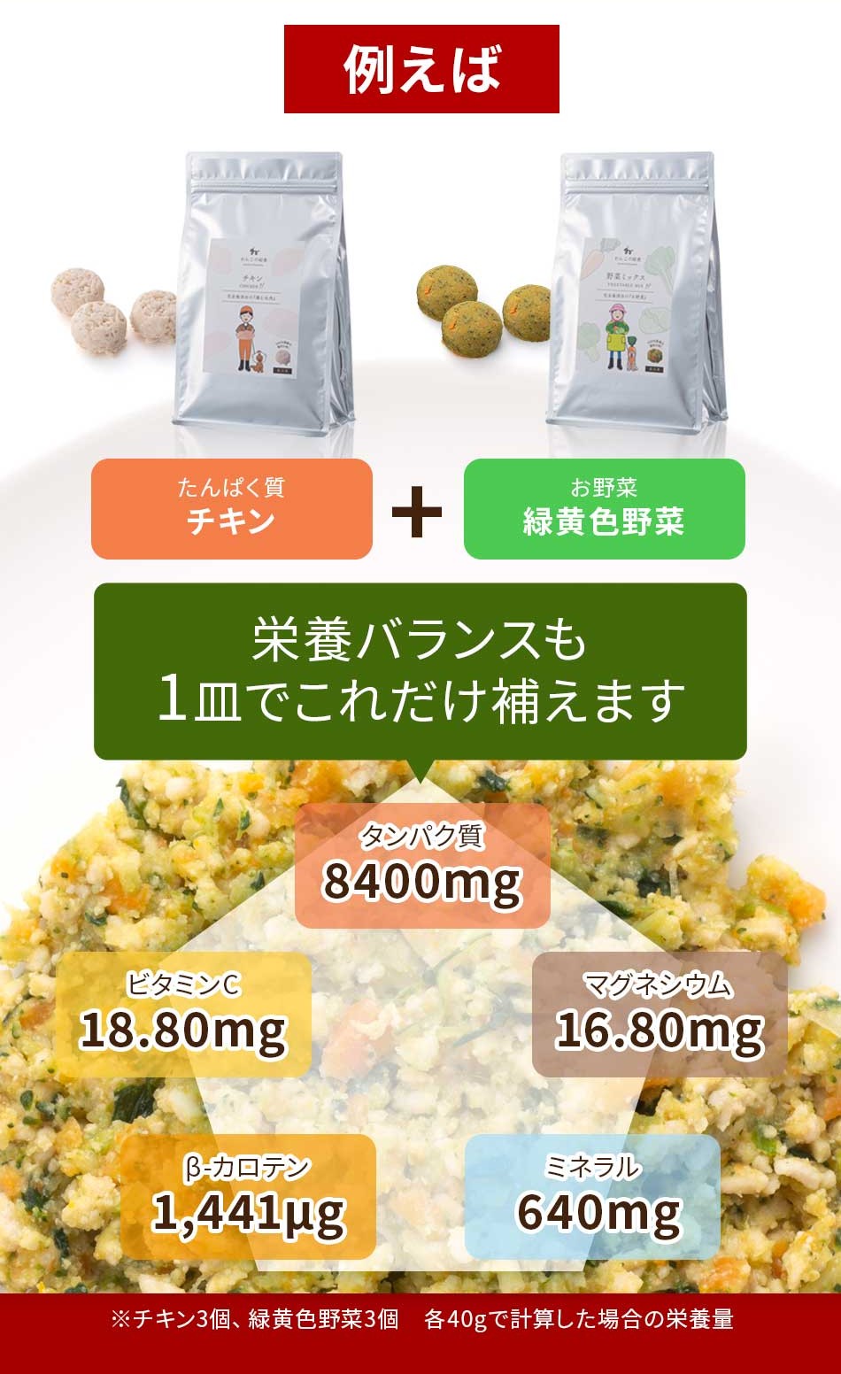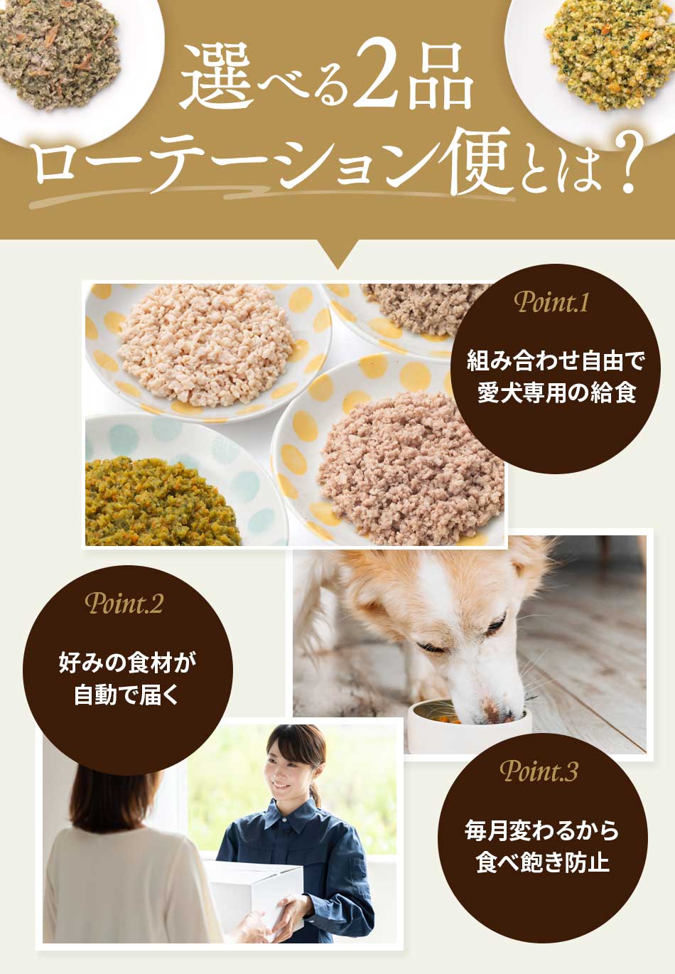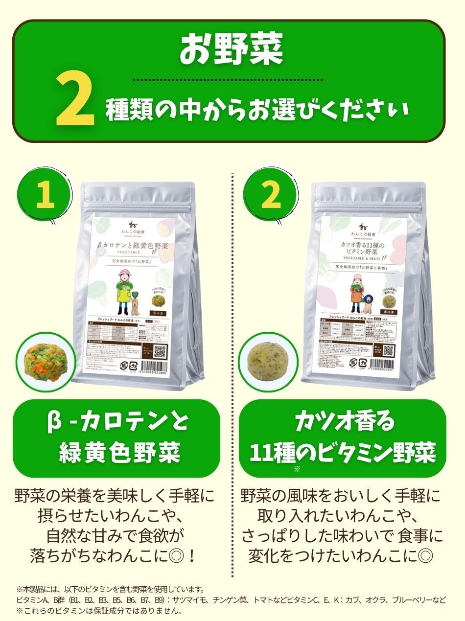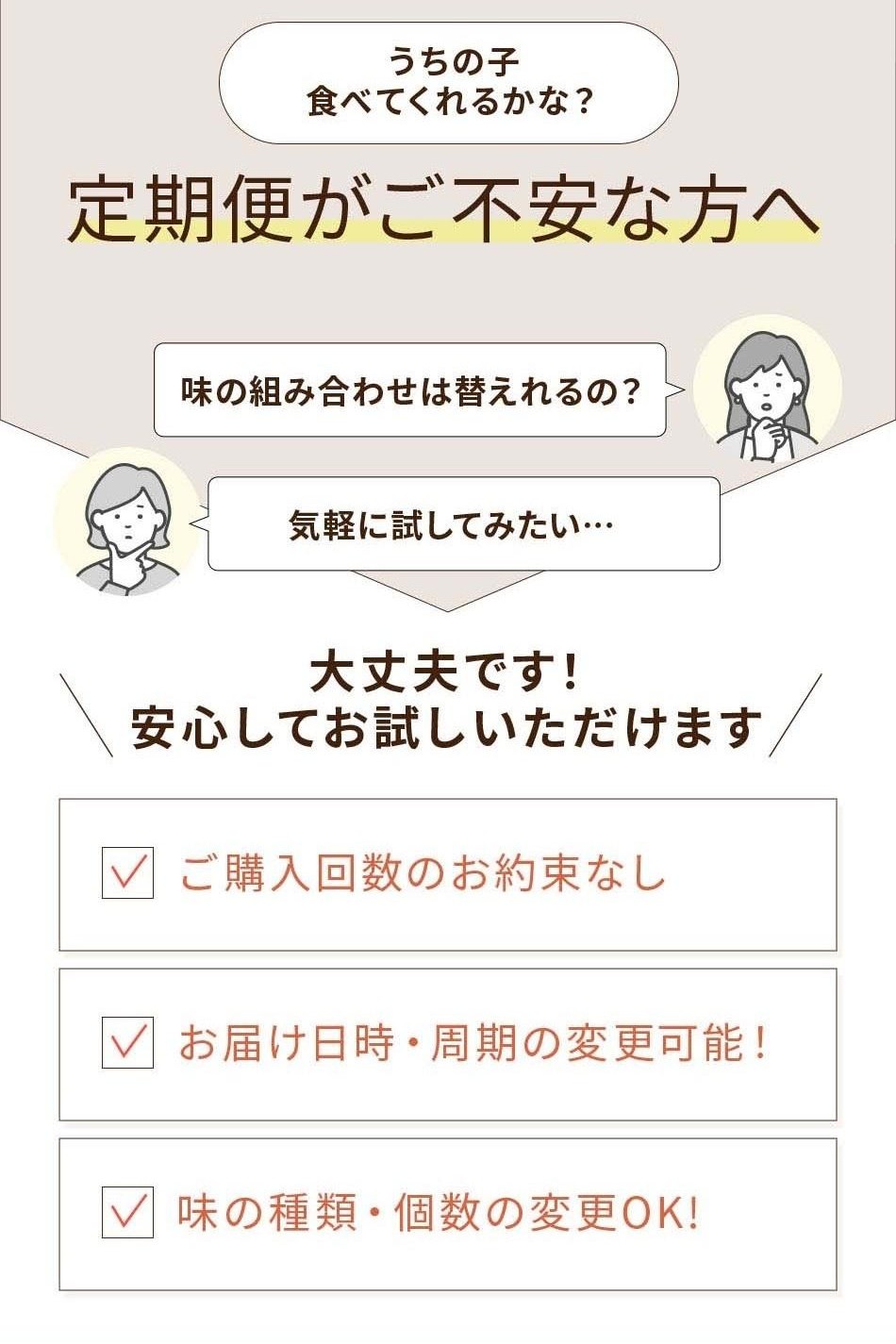 バランスの良い食生活を続けて欲しいという思いから2点セットをオススメしております。ですが、どうしても食べられない食材がある場合は、お気軽にご相談ください。できる限りご希望に添えるようにいたします。