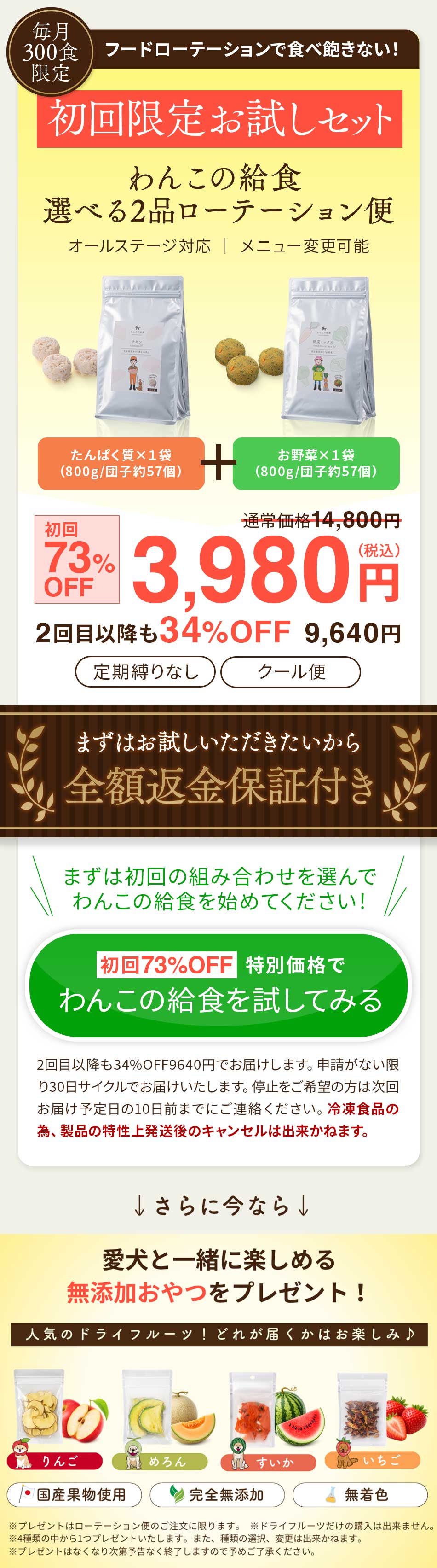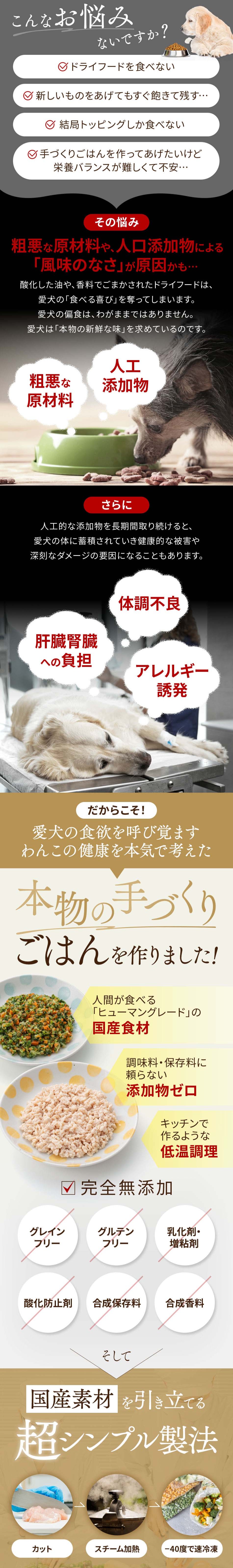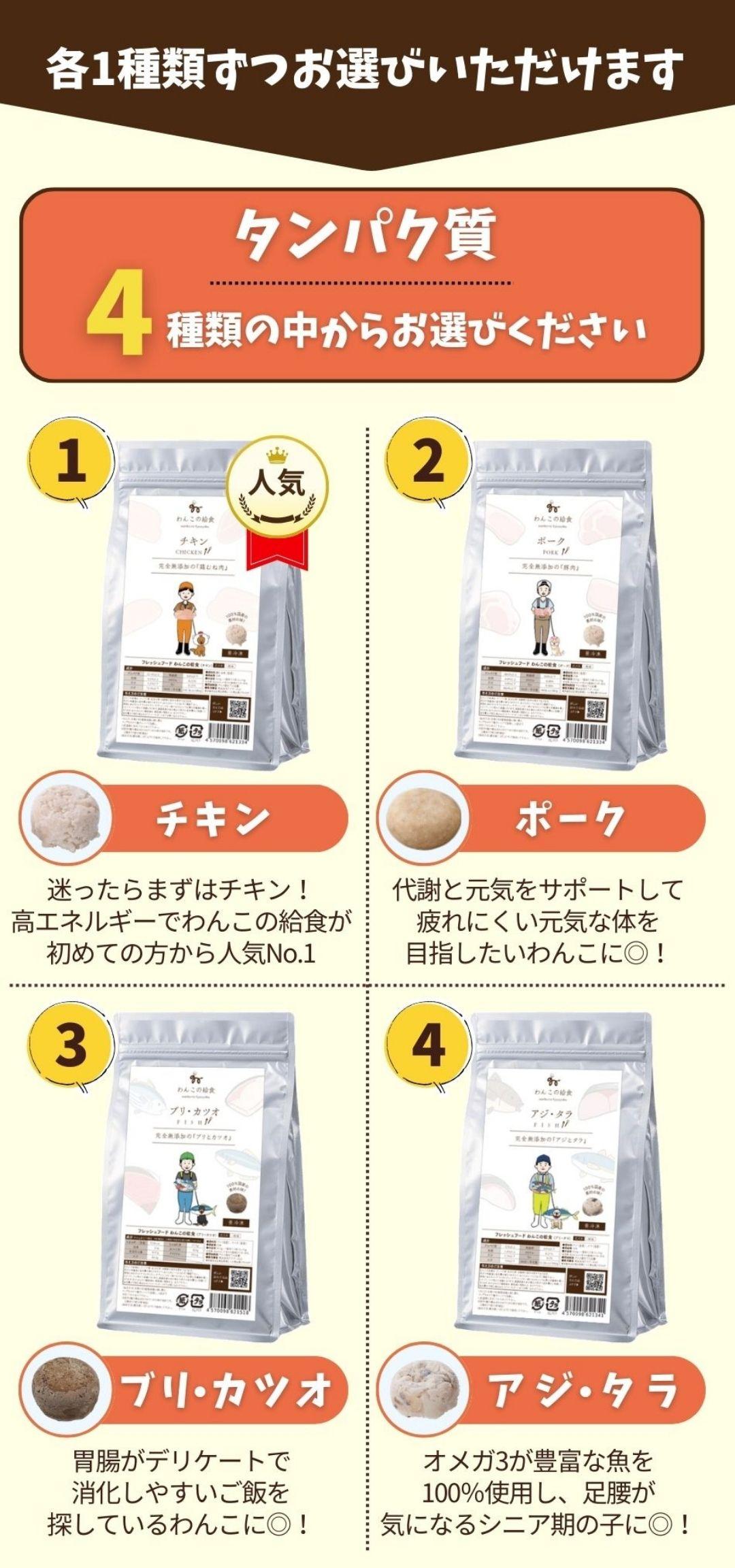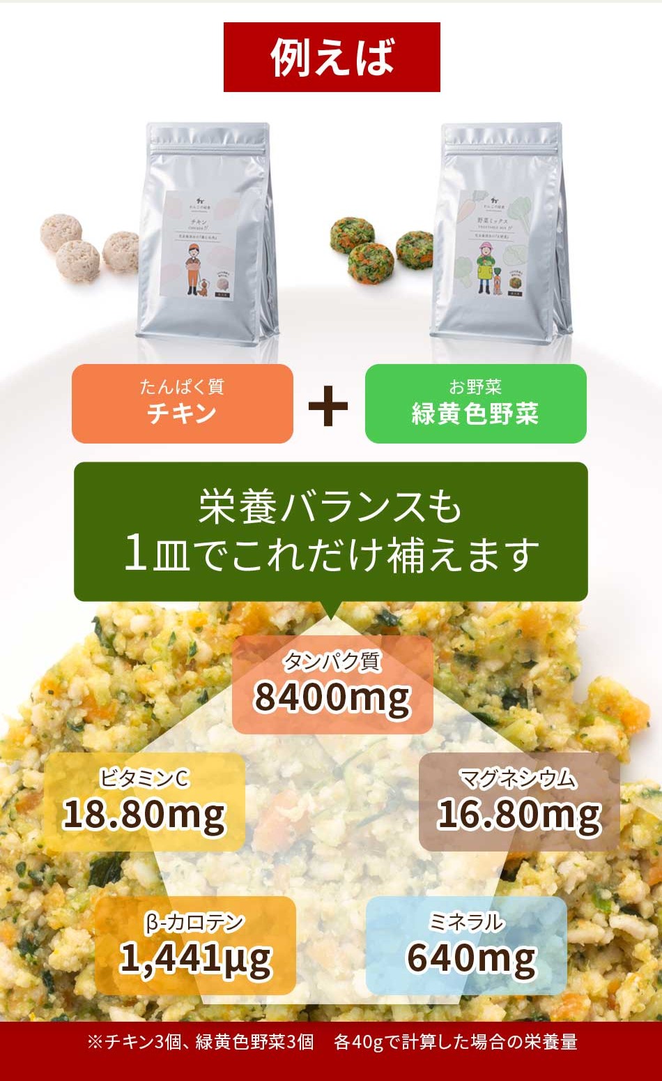 バランスの良い食生活を続けて欲しいという思いから2点セットをオススメしております。ですが、どうしても食べられない食材がある場合は、お気軽にご相談ください。できる限りご希望に添えるようにいたします。
