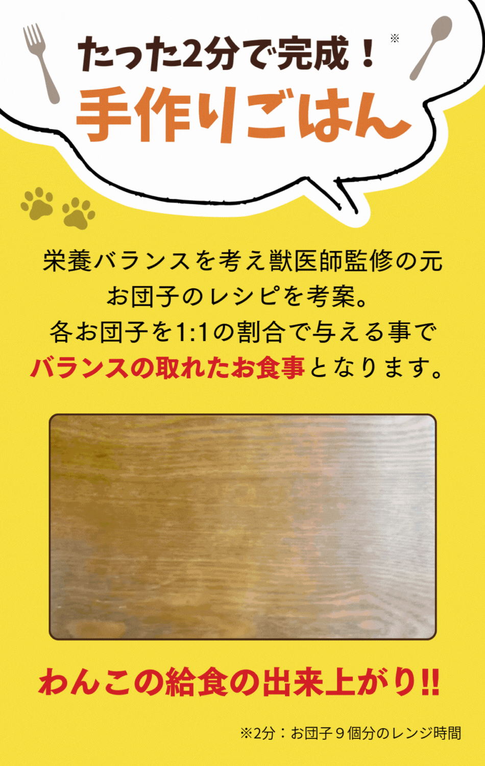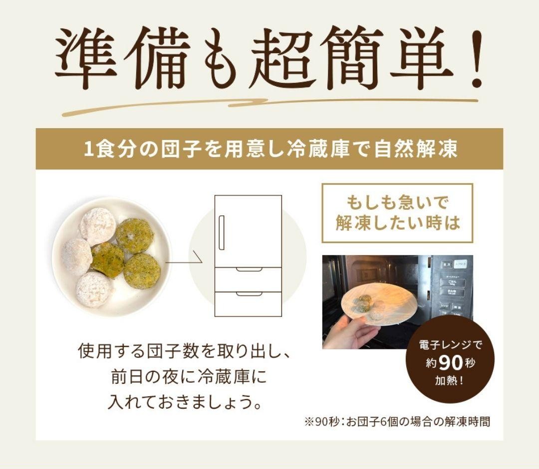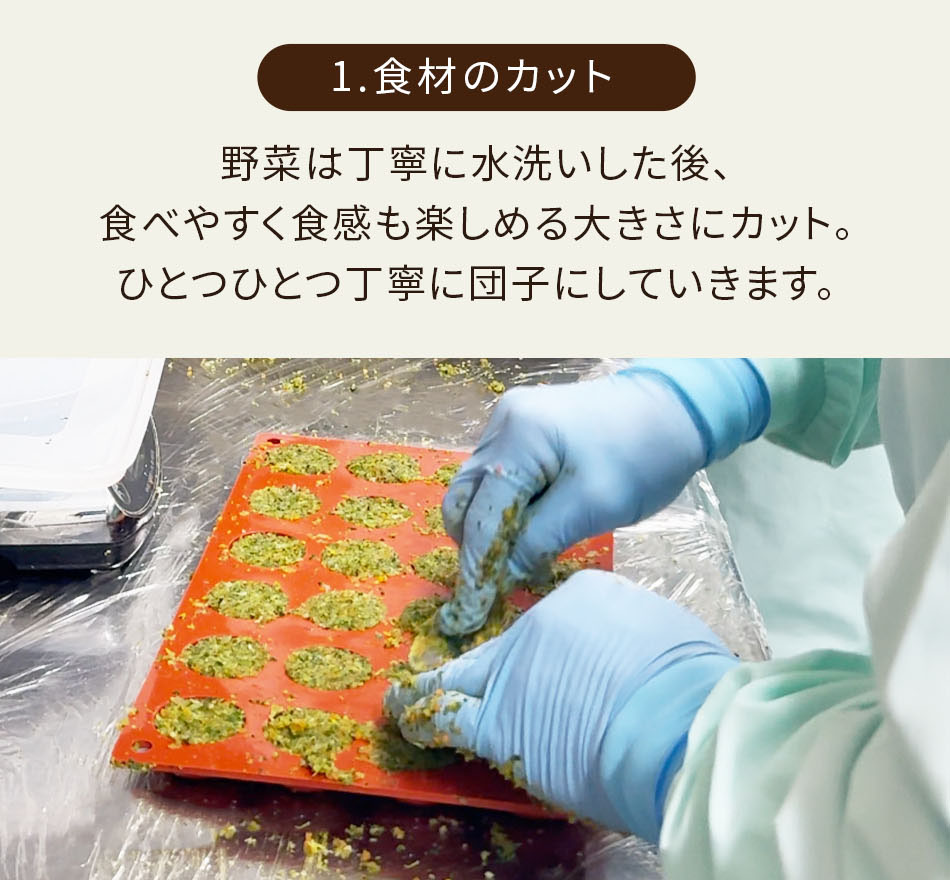 また、野菜は水分を多く含むため、冷凍後の重量が減り、たんぱく質よりも団子数が6~9個程度多くなる傾向があります。