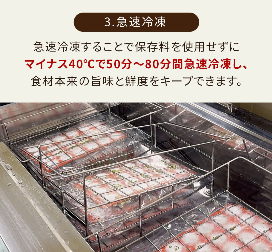 解凍した後は、冷蔵庫保管にて翌日中にお召し上がりください。風味や栄養価を保ち、おいしく食べることができます。